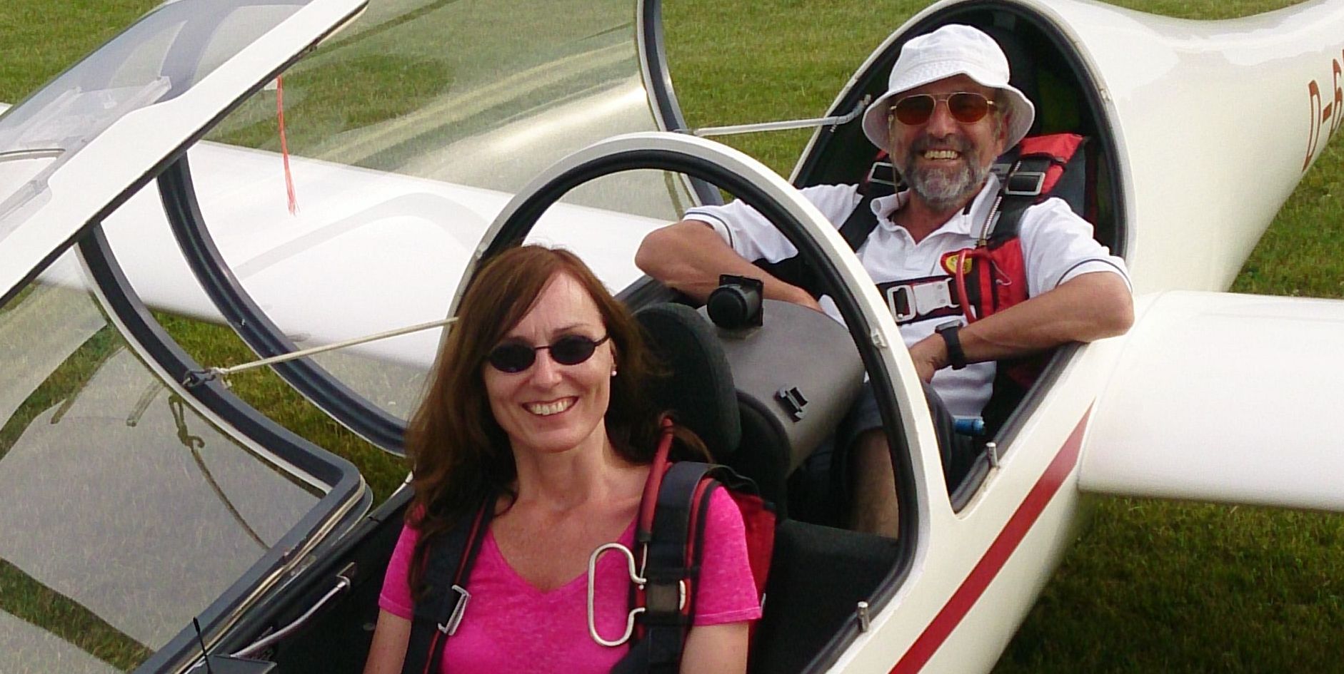 Schon letztes Jahr hatte Fluglehrer und Schullehrer i. R. Ulrich Wurm seine Kollegin Claudia Mey vom Asam Gymnasium München mit ihrer Klasse zum Schnuppern (siehe Beitrag von 2014) eingeladen. Die Schüler konnten zusammen mit Uli und den Piloten des MLV dann selbst einmal einige Flüge im Segelflugzeug miterleben. Damit der Bus für die Rückfahrt noch rechtzeitig erreicht werden konnte, hatte damals Physik und Mathematik Lehrerin Claudia Mey auf ihre eigenen Flüge verzichtet. Das sollte nun dieses Jahr nachgeholt werden, auch Katrin Braunmüller, eine weitere Kollegin folgte der Einladung nach Thannhausen. Am vergangenen Samstag war es dann soweit, zusammen mit den Flugschülern und Uli, konnten Claudia und Katrin einen zwar heißen, aber schönen Flugtag miterleben. Dank guter Blauthermik waren auch längere Flüge möglich. Claudia Mey hatte schon vor einigen Jahren in den Segelflug hinein geschnuppert und hatte das Händchen für’s Fliegen behalten. Selbständig konnte sie mit viel Gefühl und Talent die Thermik zentrieren und bis auf 2400 Meter über dem Meeresspiegel steigen. Nach einer Stunde ging es dann wieder zurück zur Landung.