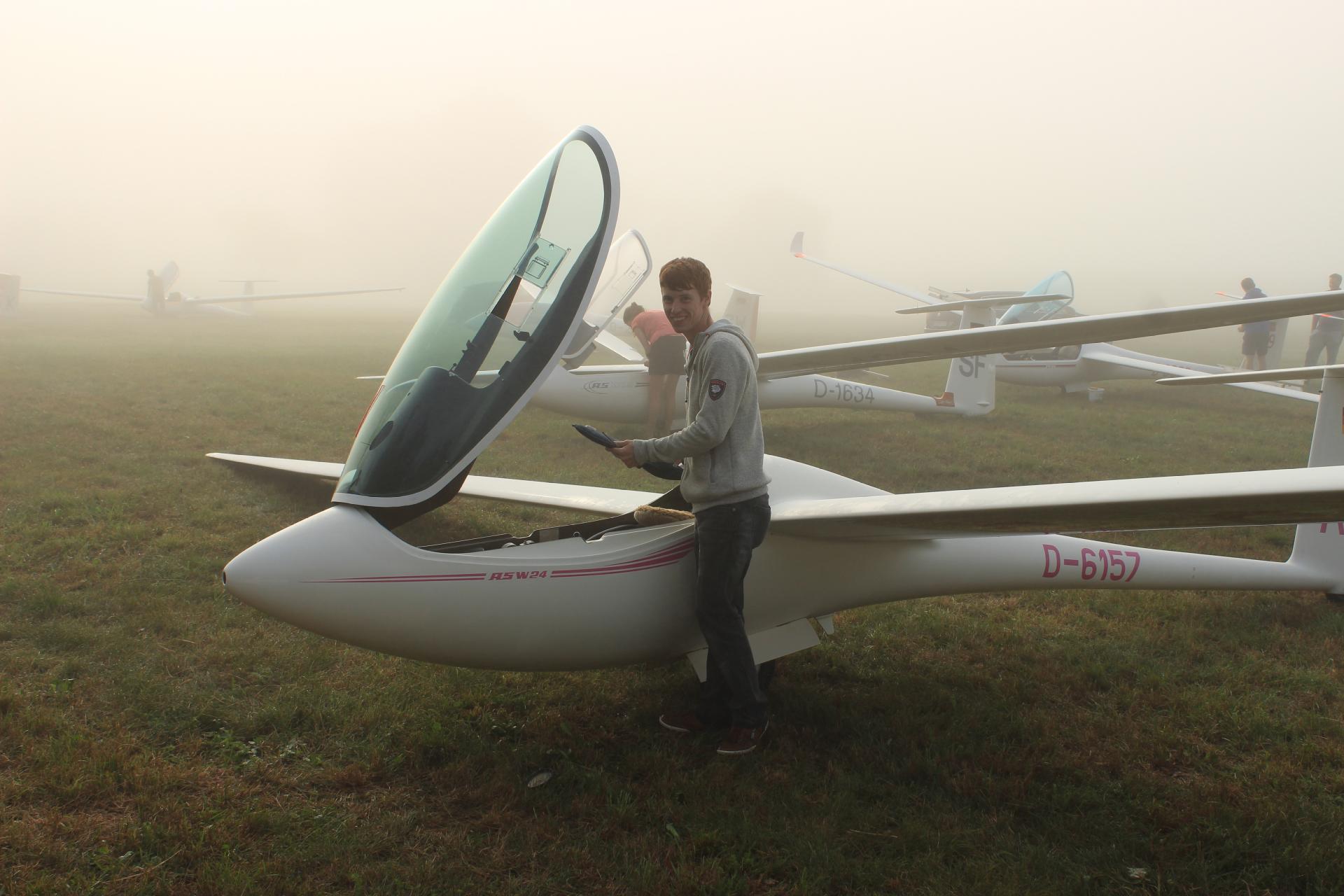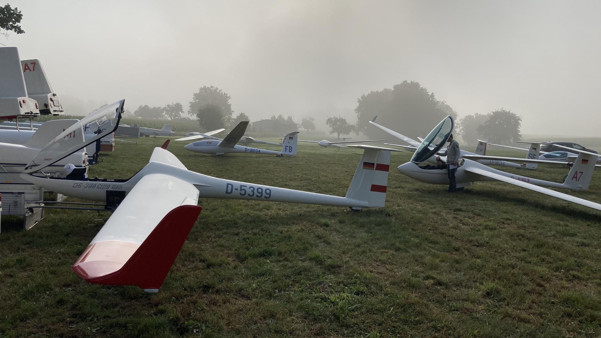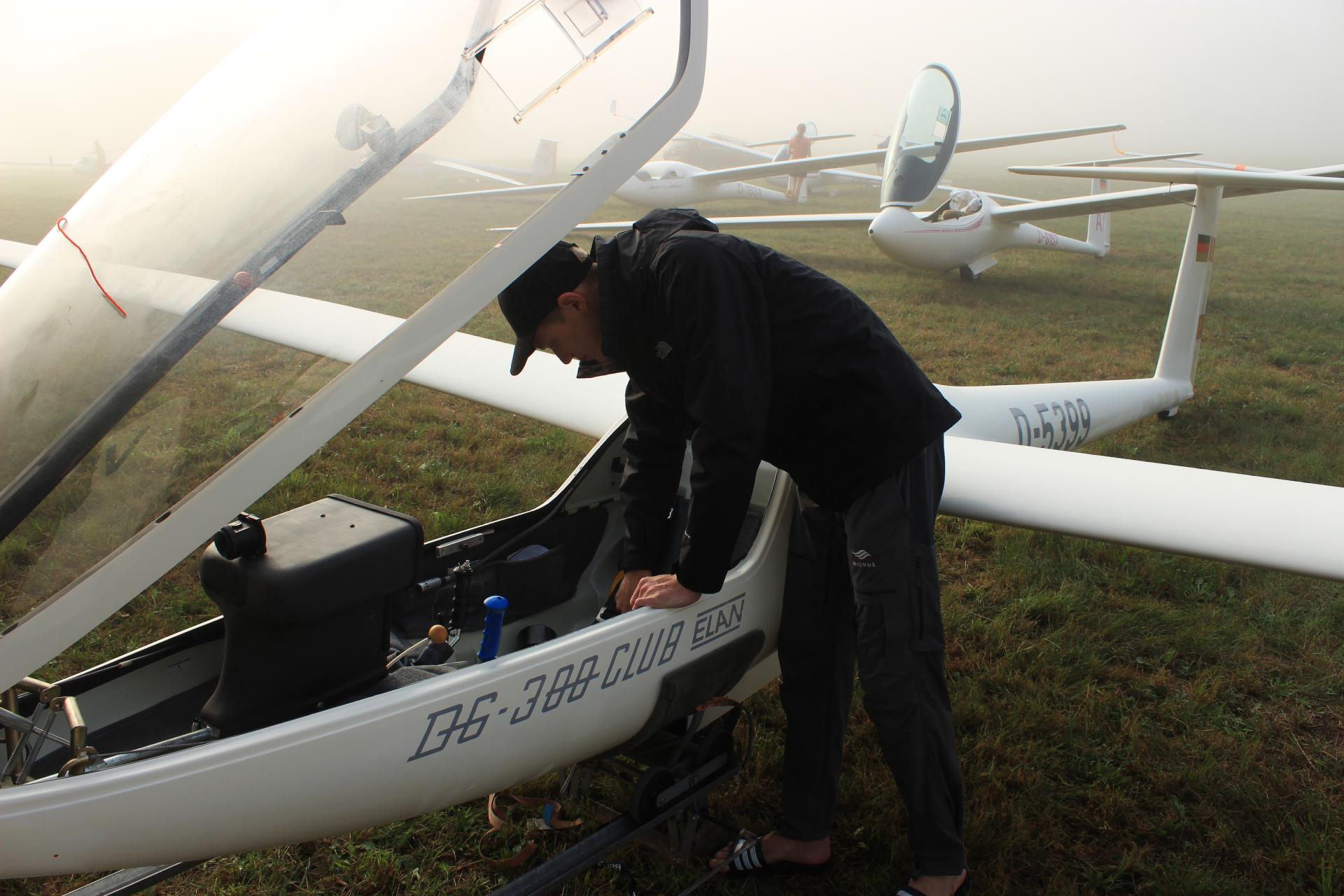 Bei dichtem Nebel wurden dann am Sonntag das erste Mal die Flugzeuge aus den Anhängern gezogen und aufgebaut. Danach folgte das 9 Uhr Briefing bei dem die Teams eingeteilt, sowie das Wetter für den Tag und eine zu fliegende Aufgabe erklärt wurden. Die fünf Trainer, alle erfahrenen jungen Wettbewerbspiloten mit Kader- und Nationalmannschafts-Erfahrung, bildeten mit je zwei LIMAs ein Team. Schon am ersten Tag konnten bei großartigen Wolkenstraßen Flugdistanzen von über 250 km erflogen werden.