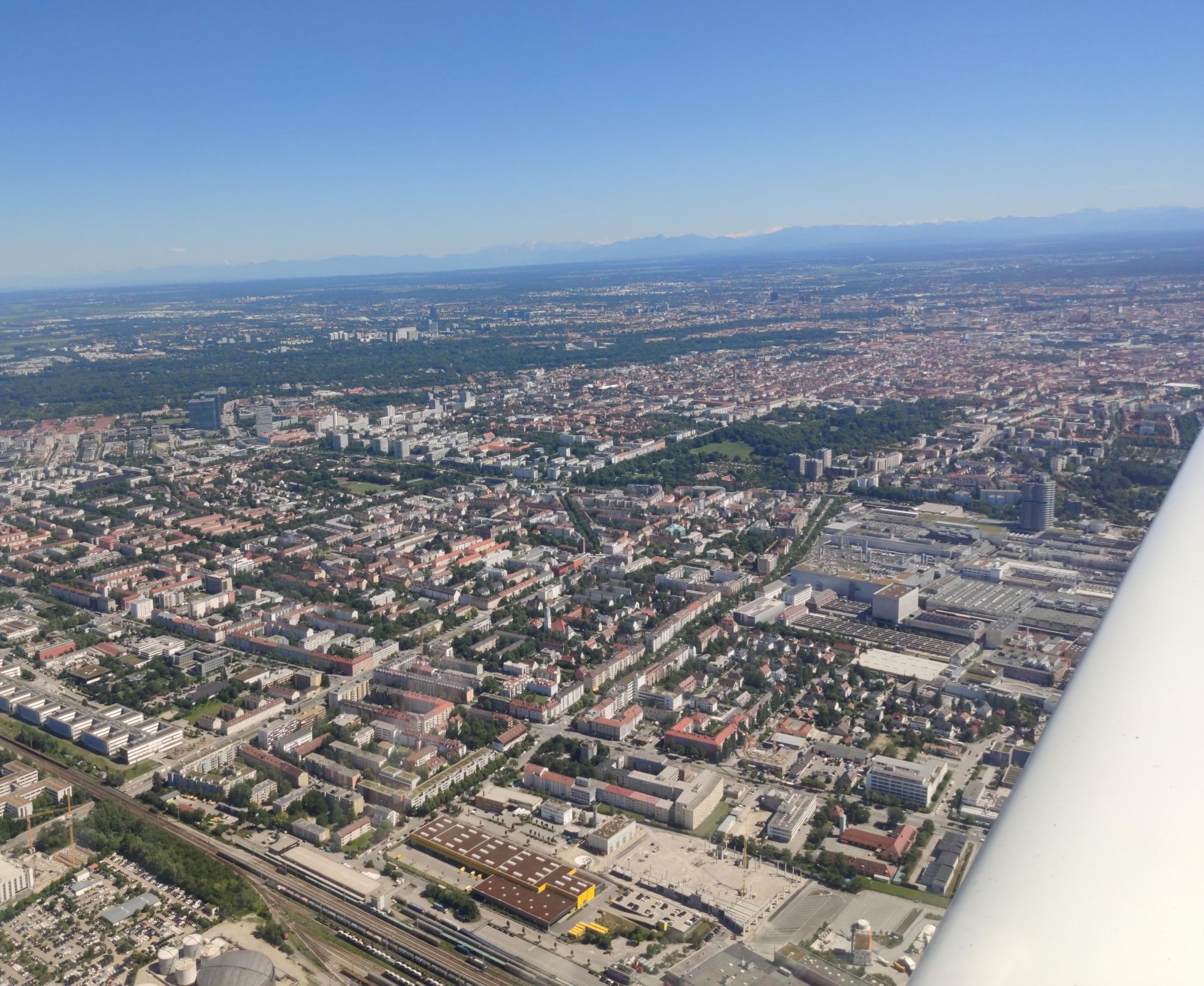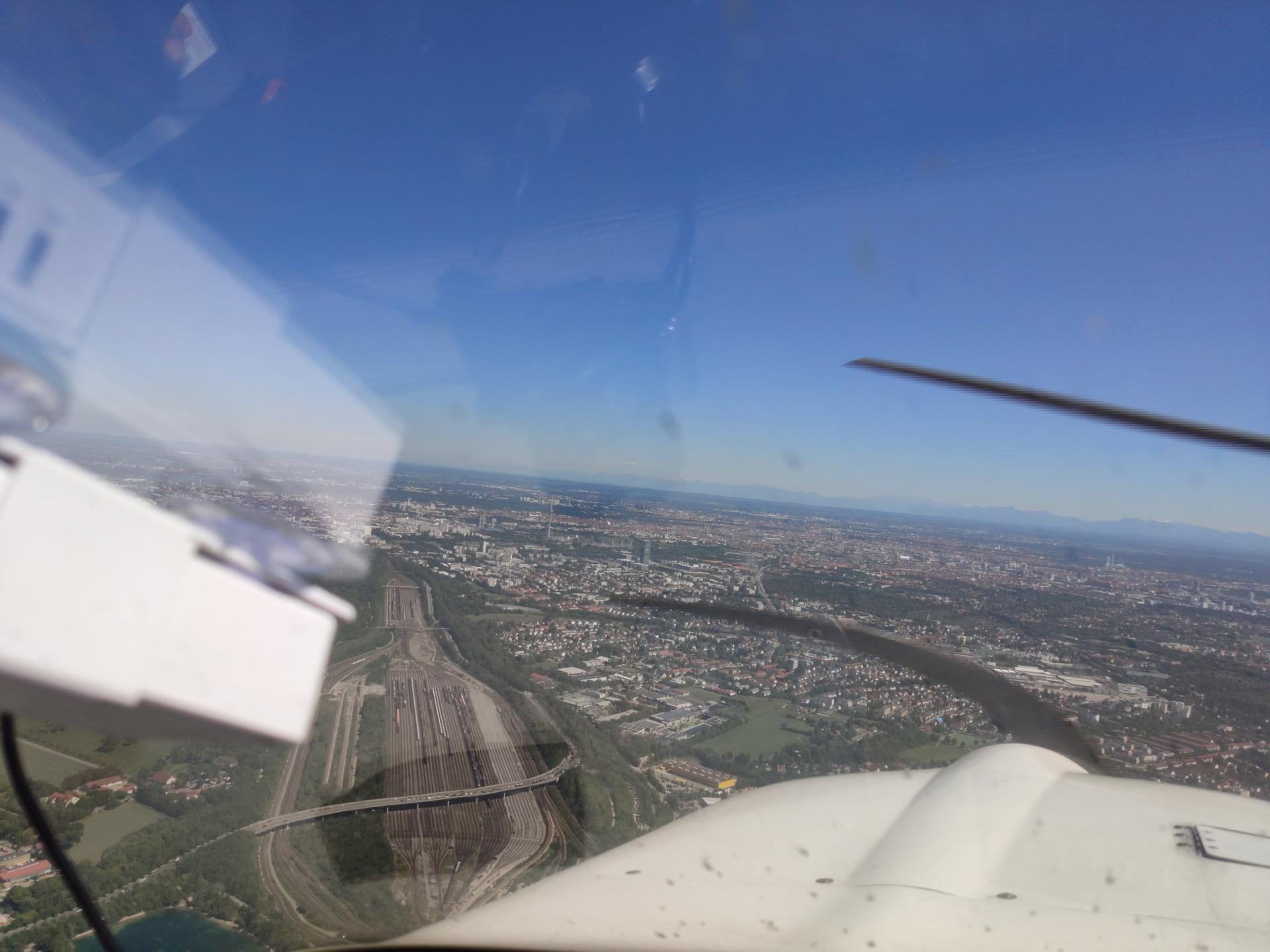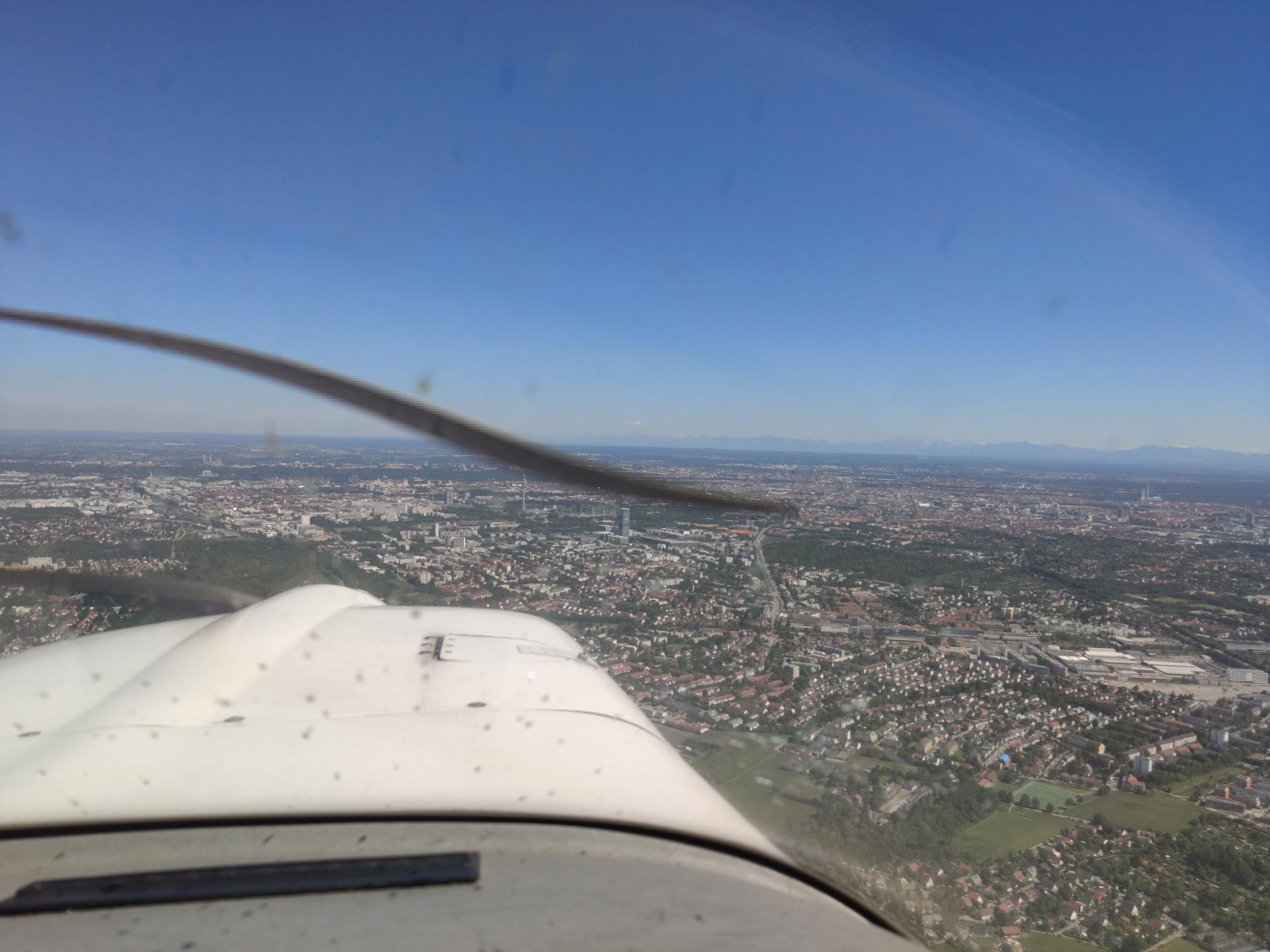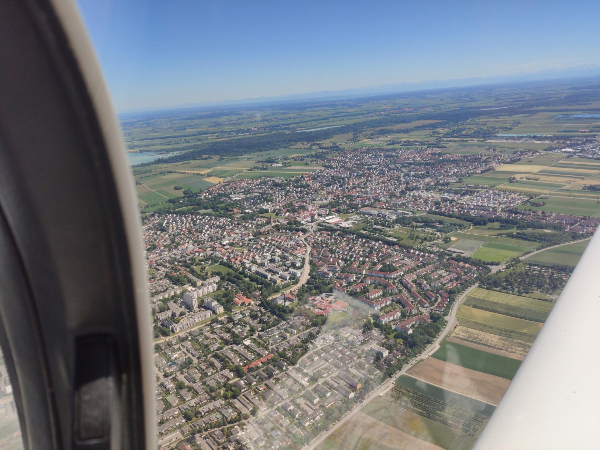 Danach ging es wieder auf Höhe und in nördlicher Richtung entlang der Foxtrott-Route hinaus aus der CTR München. Mit einer Linkskurve nach Westen wendeten sich Moritz und Timo schließlich zurück in Richtung Heimatflugplatz.