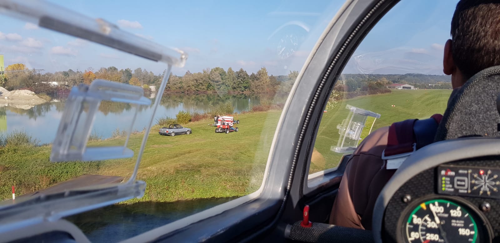 Zum diesjährigen Abschlussfliegen hatte sich Abteilungsleiter Thommy etwas Neues einfallen lassen: Neben dem obligatorischen Ziellandewettbewerb, mussten die teilnehmenden Piloten und Flugschüler auch die Höhe über Grund per Augenmaß abschätzen. Der Höhenmesser im vorderen Cockpit war abgedeckt, nur der Fluglehrer bzw. Co-Pilot auf dem hinteren Platz hatte einen Höhenmesser zur Verfügung. Einerseits zur Sicherheit, aber natürlich auch um die angezeigte Höhe an die Jury Pia und Timo weiterzugeben. Den Wettbewerb ließen sich auch unsere Fluglehrer im Ruhestand Ulrich und Hans nicht entgehen. Ulrich reiste dazu gar aus München an und lies sich nicht zwei mal Fragen nochmal auf dem hinteren Sitz mitzufliegen. Mit einer Landung in das 10 Meter lange Zielfeld und nur wenigen Metern Abweichung bei der Höhenschätzung lag am Ende Thommy knapp vorne.
