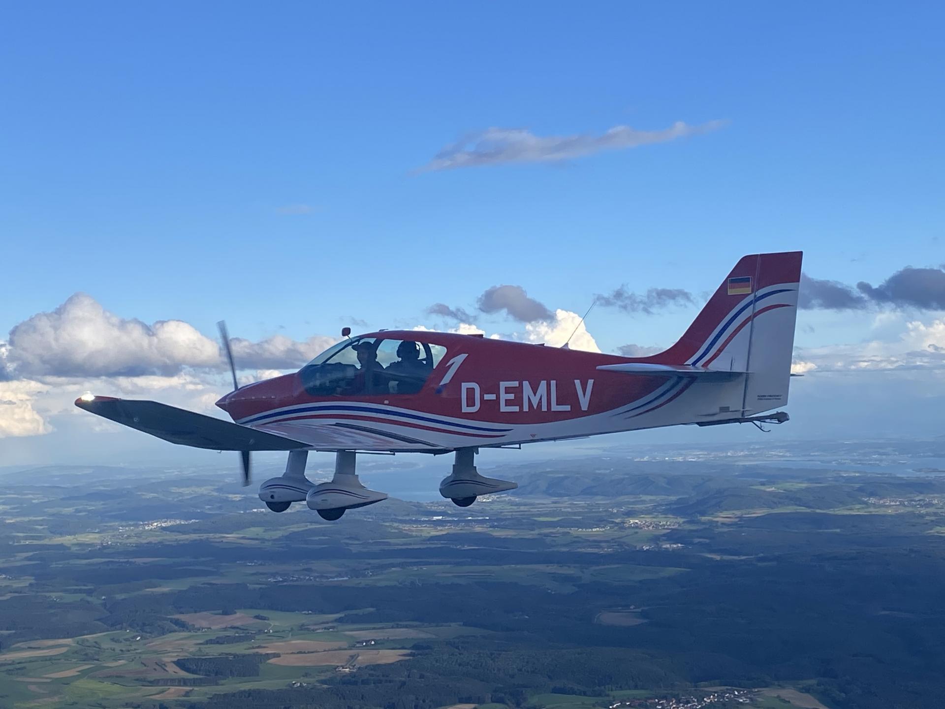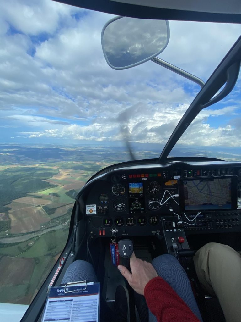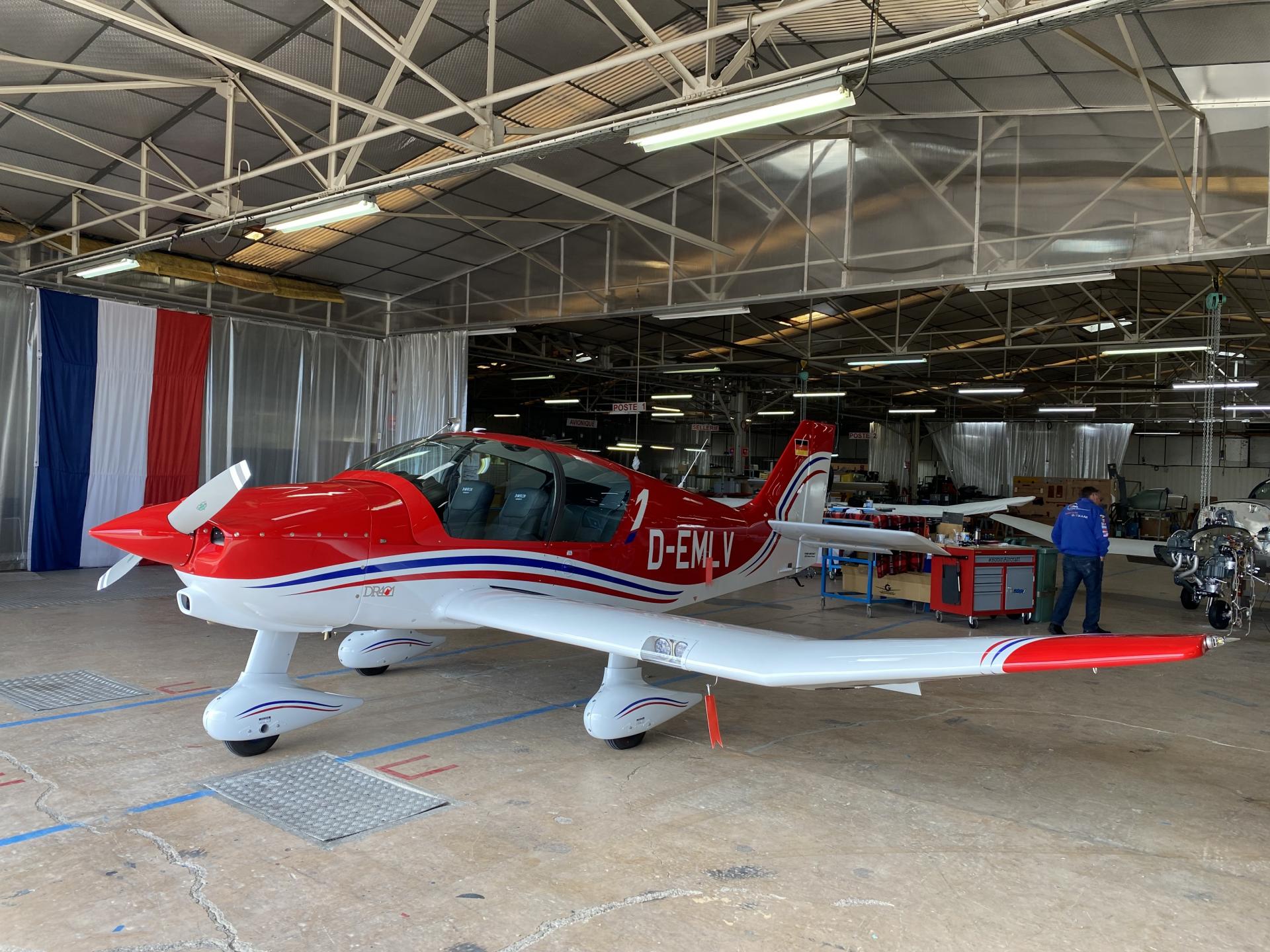 Schon seit Ende Juli stand unsere DR401 fertig am Werksflughafen von Hersteller Robin in Dijon – Darois, Frankreich. Es fehlten nur noch die nötigen Papiere zur Zulassung. Am 9. September war es dann nach langem Warten endlich soweit: Das Luftfahrtbundesamt hatte uns alle nötigen Unterlagen zugesandt und wir konnten unser neues Flugzeug endlich abholen. Unser 1. Vorsitzender und Abteilungsleiter Motorflug Philipp, sowie Schatzmeister und Motorfluglehrer Moritz ließen es sich nicht nehmen, das neue Flugzeug persönlich abzuholen. In der DR400 unserer Fliegerkameraden aus Günzburg ging es für die beiden nach Frankreich. Herzlichen Dank an Felix Rösch, der unsere Crew mit der DR400 aus Günzburg sicher nach Frankreich gebracht hat. Den 4. Platz im Flugzeug hat Vereinsmitglied Stefan Müller genutzt um an diesem einmaligen Erlebnis teilzunehmen. Am 09.09. waren die Wetterbedingungen nicht ganz optimal, aber für die Erfahrenen Piloten Felix, Philipp und Moritz kein Problem. Bei Robin konnten alle auch einen kleinen Blick in die Hallen von Hersteller Robin werfen, bevor es dann zurück in Richtung Thannhausen ging. Stefan blieb an Bord bei Felix und Philipp und Moritz überführten unsere neue D-EMLV. Nach 105 Minuten Flugzeit setzte das Flugzeug sicher in Thannhausen auf. Einige schaulustige Mitglieder waren bereits vor Ort um das neue Flugzeug in Empfang zu nehmen. Auch die Jugendlichen Segelfliegerinnen und Segelflieger, die zum Jugendvergleichsfliegen zu Gast waren, staunten nicht schlecht. Die meisten kennen nur die „alte Jodel“ DR400 und mit der roten Lackierung ein wahrer Traum für jeden Motorflugpiloten.