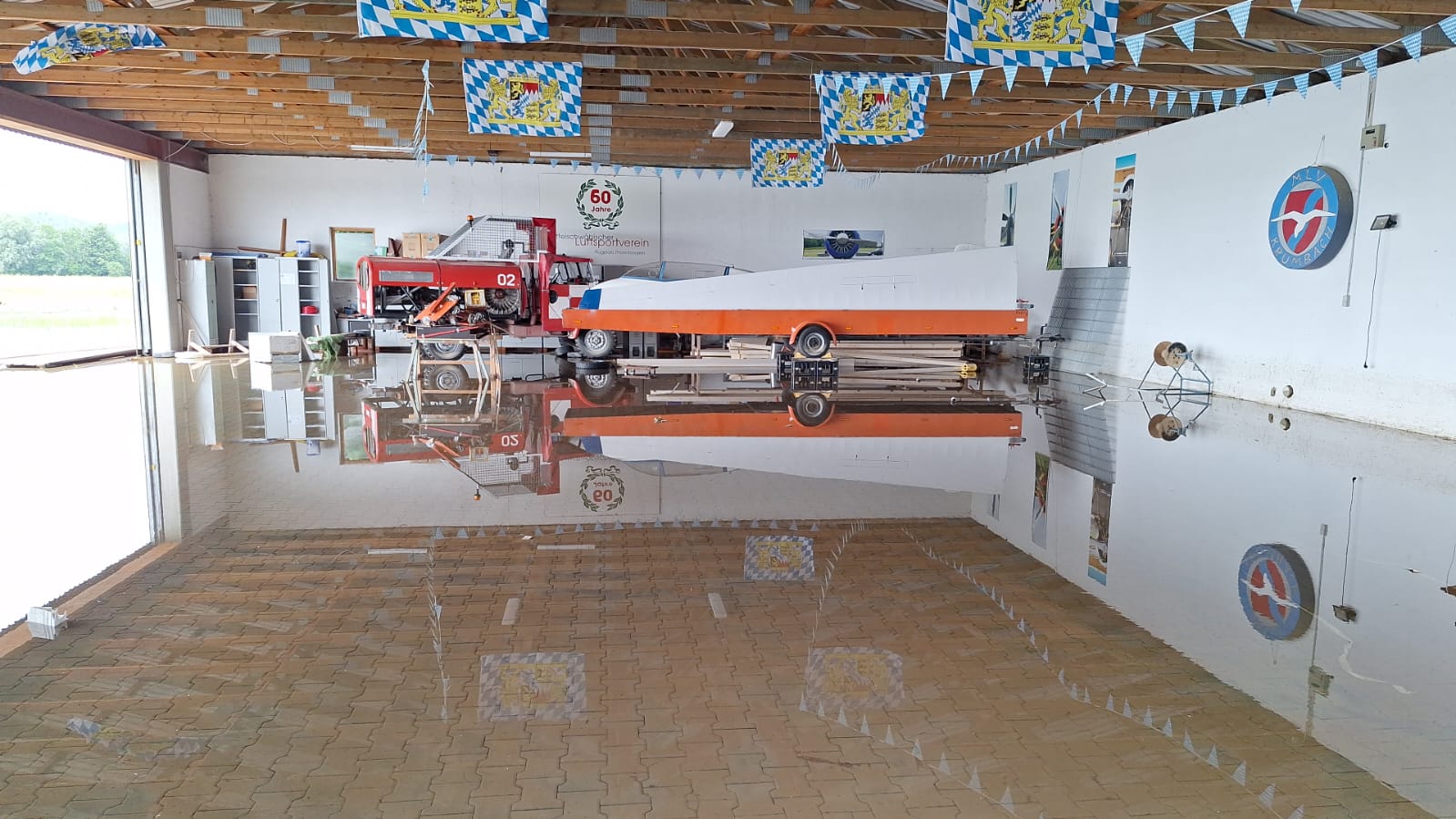 Als erste Maßnahme wurde auch unser Vereinsheim und die Segelflughalle von den Mitgliedern gereinigt. Der Großteil der Inneneinrichtung unseres Vereinsheims musste entfernt und entsorgt werden.