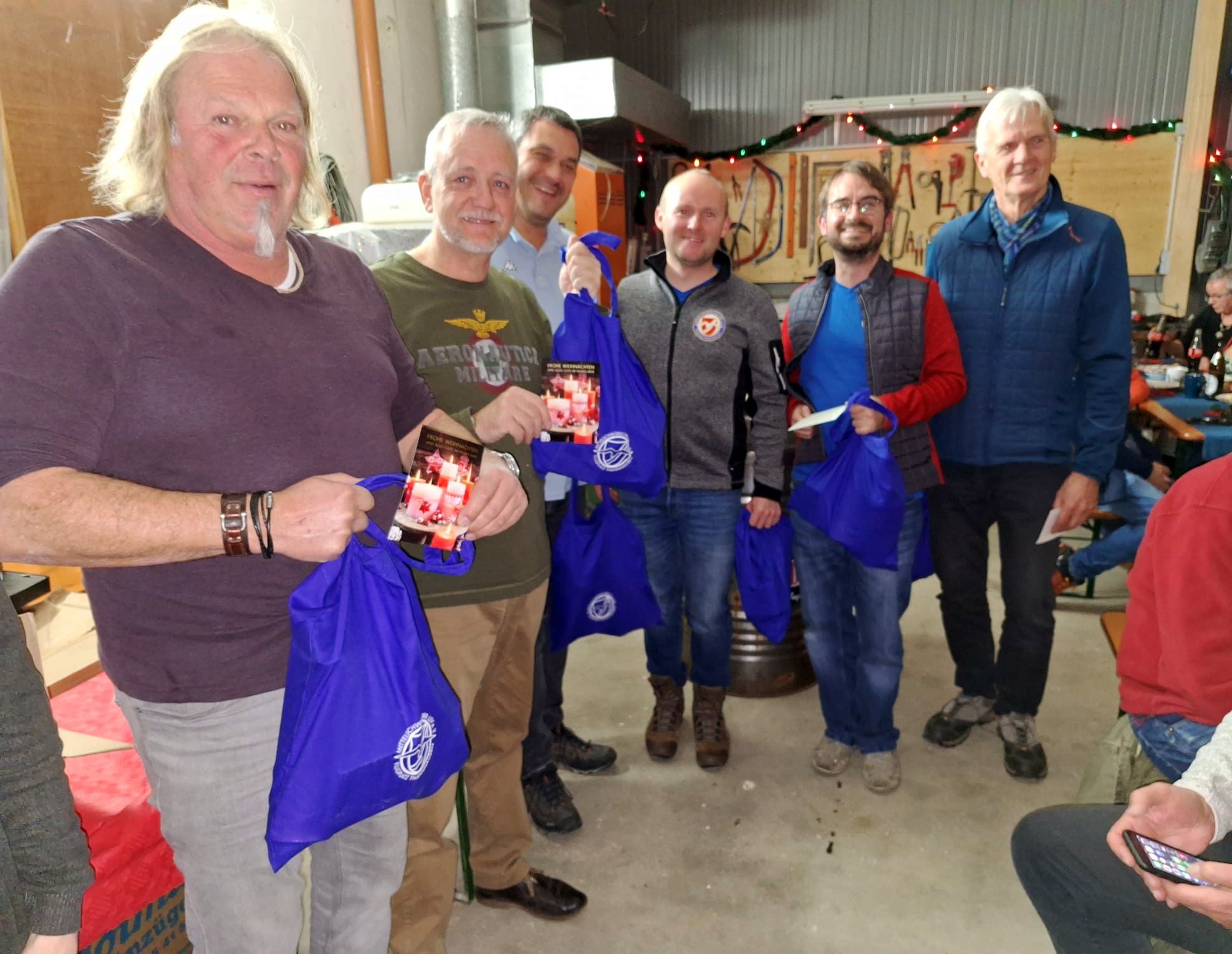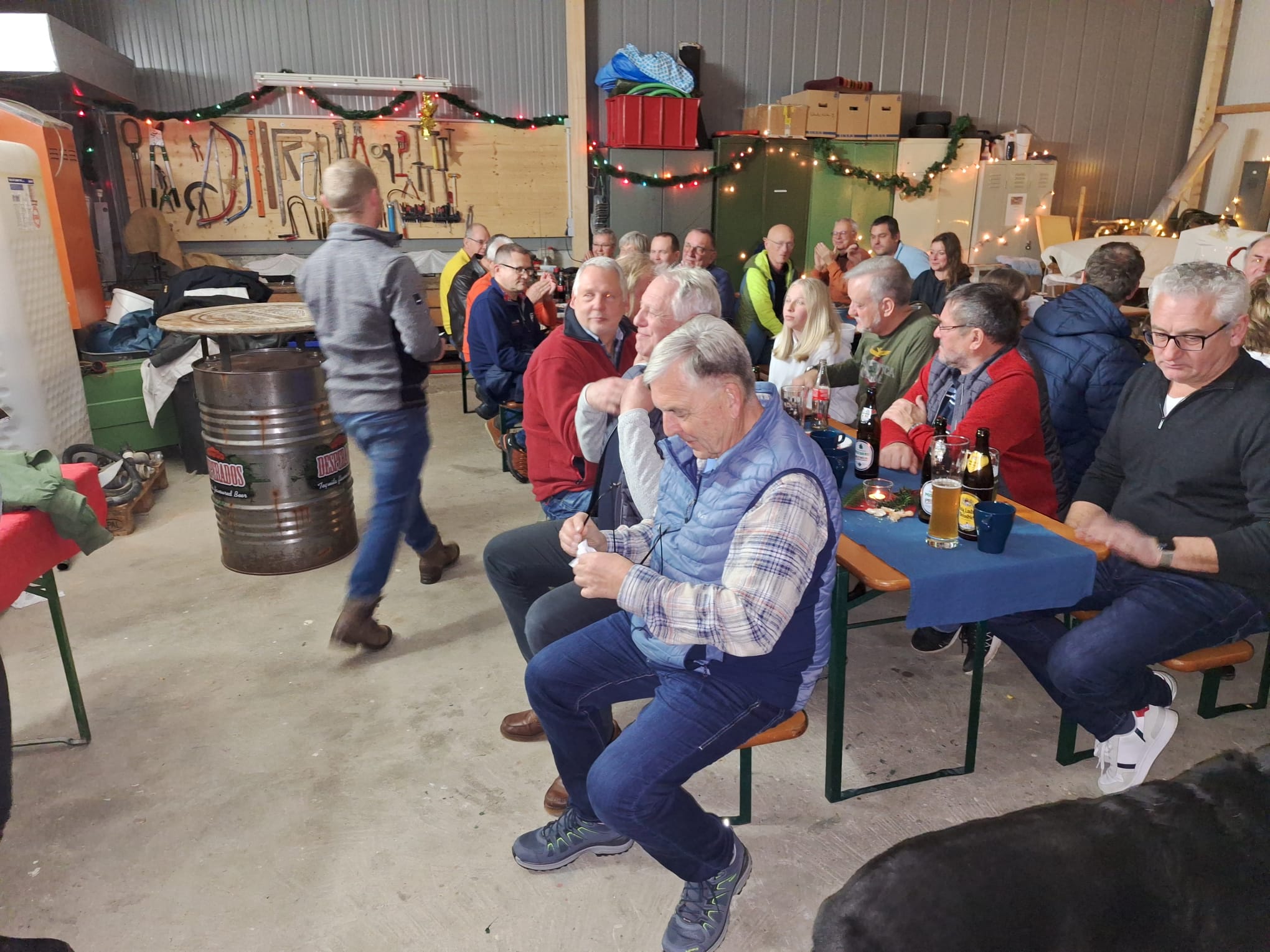 Dieses Jahr haben wir unsere Weihnachtsfeier kurzfristig in die Werkstatthalle verlagert. Da nach dem Hochwasser noch die Renovierungsarbeiten im Vereinsheim ausstehen und auch der Platz etwas knapp gewesen wäre, wurde unsere Werkstatt weihnachtlich geschmückt. Zusammen mit der ein oder anderen Tasse Glühwein und Punsch kehrte schnell fröhliche Stimmung ein. Für das leibliche Wohl sorgte unser Mitglied und Metzgermeister Gerhard Leberl.