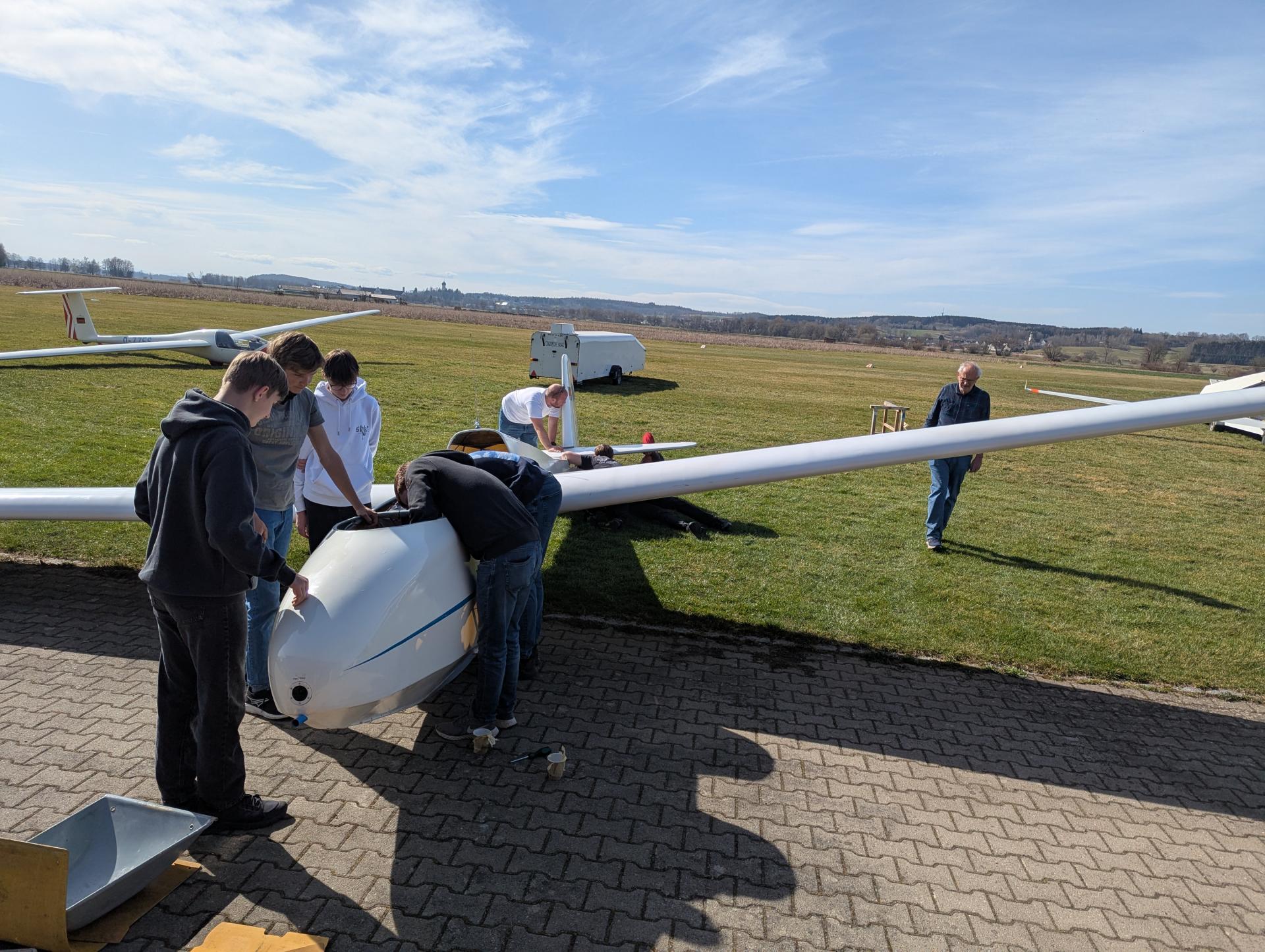 Mit dem Frühling kehrt auch auf unserem Flugplatz wieder spürbar mehr Leben ein. Am 22. März fand zunächst die Jahresnachprüfung der Segelflugzeuge statt. Nach gründlicher Wartung und Politur konnte Prüfer Mario Hagleitner den einwandfreien technischen Zustand aller Maschinen bestätigen.