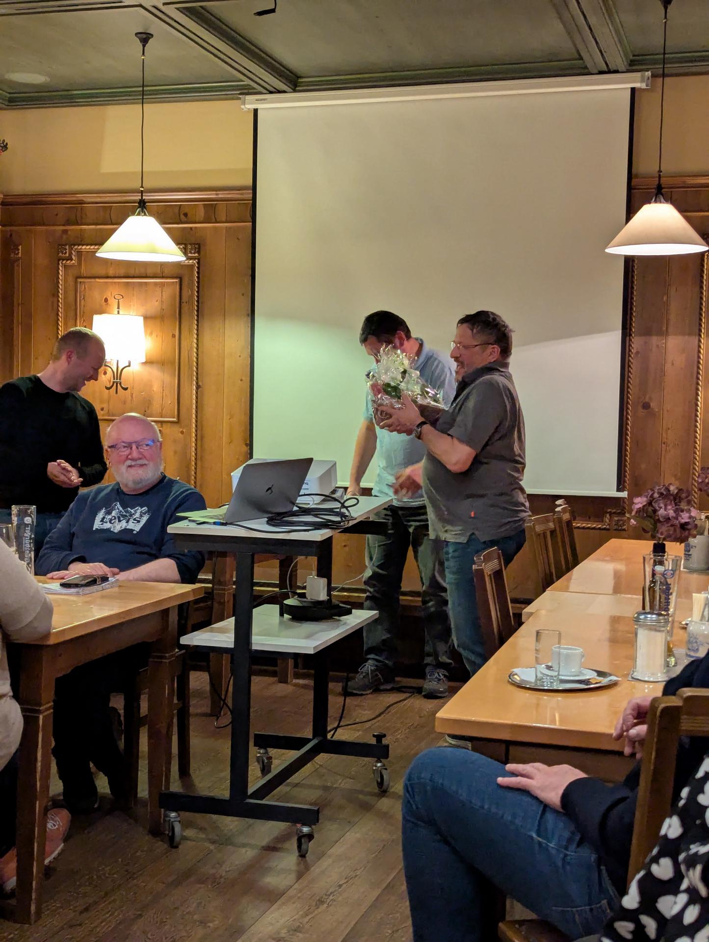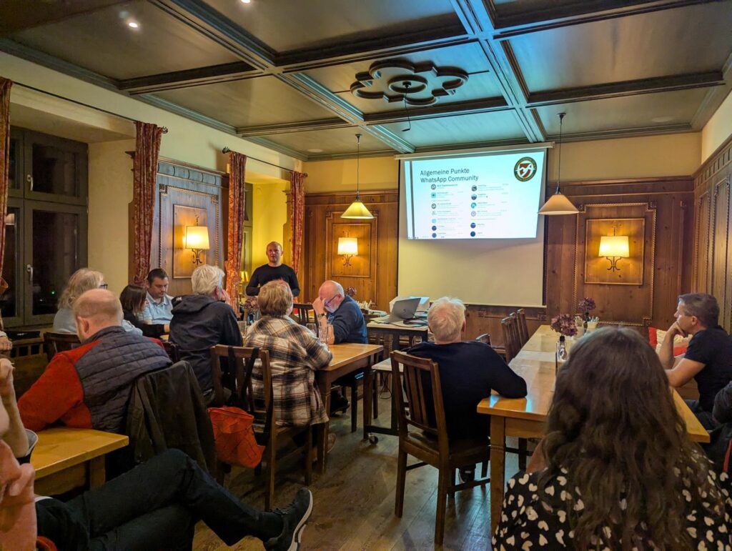 Am Abend fand dann unsere Mitgliederversammlung 2025 statt. Die Vorstände und Abteilungsleiter berichteten über die erfreuliche Entwicklung des MLV. Zwar hat das Hochwasser im Juni 2024 einige Schäden im Vereinsheim verursacht – doch alle Flugzeuge blieben trocken. Unsere neue, hochwassergeschützte Halle hat sich zum ersten Mal erfolgreich bewährt. Während der Winterpause wurde fleißig gearbeitet – nicht nur an der neuen Empore in der Halle, sondern auch im Vereinsheim und in der Küche. Die alte Einrichtung wurde durch das Hochwasser zerstört. In einer engagierten Arbeitsgruppe haben unsere Mitglieder ein neues, modernes Konzept entwickelt: Die ehemalige Speisekammer wurde entfernt, um die Küche zu vergrößern. Der Raum wurde komplett saniert – mit neuem Boden, Decke und Elektroinstallation. Für künftige Hochwasser-Ereignisse sind wir nun bestens gerüstet: Edelstahlmöbel und erhöhte Elektrogeräte sorgen für Sicherheit und Langlebigkeit.