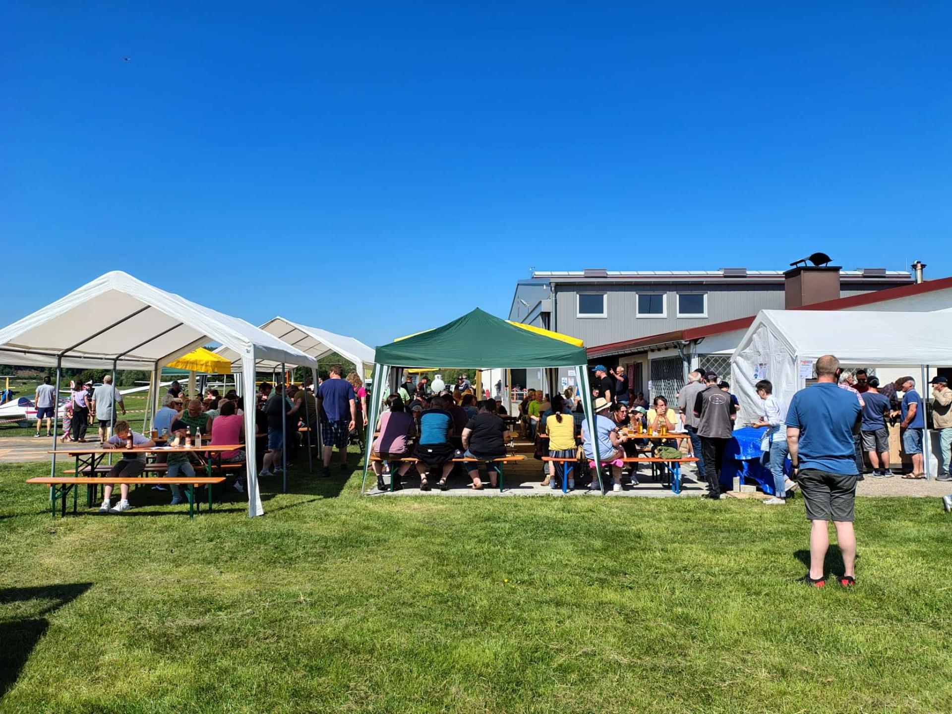 Besser hätte unser Weißwurst-Fly-In kaum sein können: strahlender Sonnenschein, beste Stimmung und zahlreiche Gäste, die uns mit dem Flugzeug, dem Auto, dem Fahrrad oder im Oldtimer besucht haben. Von der gut gefüllten Terrasse aus ließ sich das bunte Treiben am Flugplatz hervorragend beobachten, und wer Lust hatte, konnte bei einem Schnupperflug im Segel- oder Motorflugzeug selbst abheben.