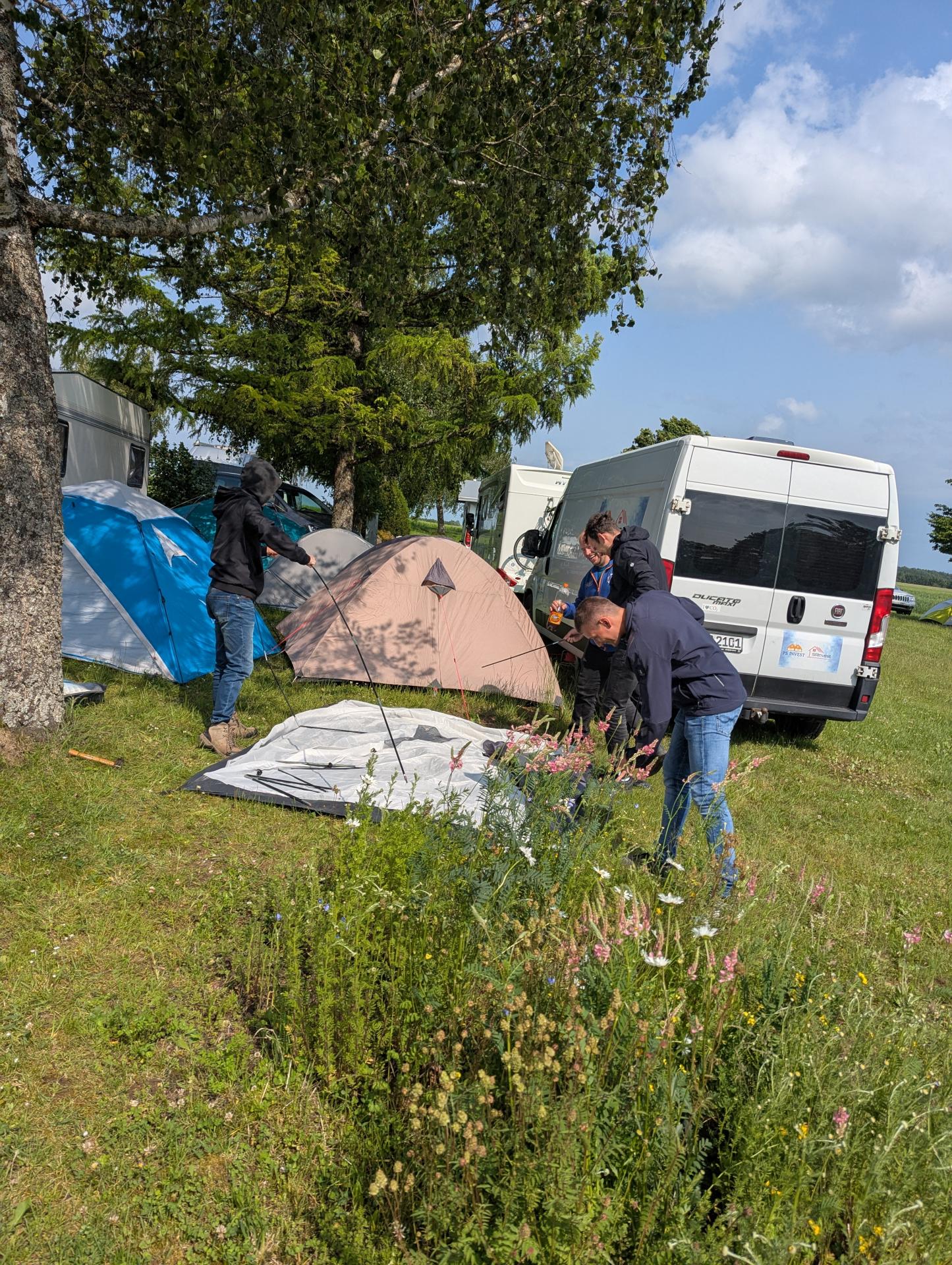 Los ging es am Samstag, den 7. Juni. Rund 15 Segelfliegerinnen und -flieger des MLV sowie eine ähnliche Anzahl vom AC Dachau reisten mit einer großen Flotte an Segelflugzeugen an. Da das Wetter eher regnerisch vorhergesagt war, verlief die Anreise entspannt. Nach der Ankunft in Leibertingen wurden zunächst Zelte und Wohnwagen aufgebaut.