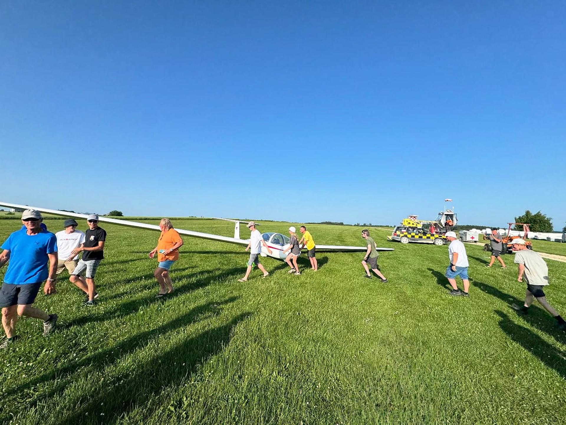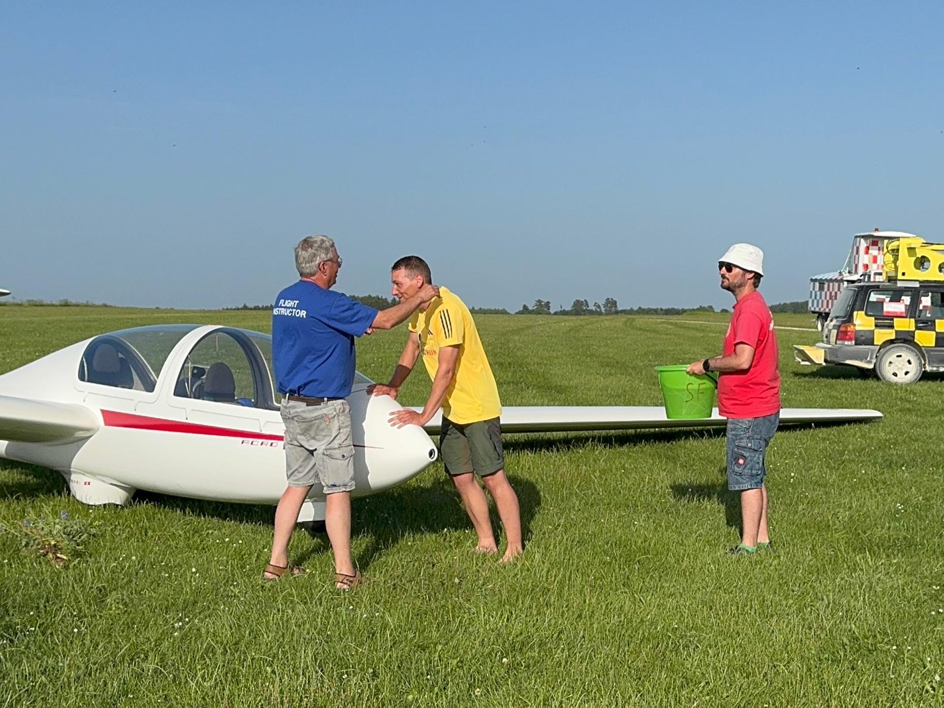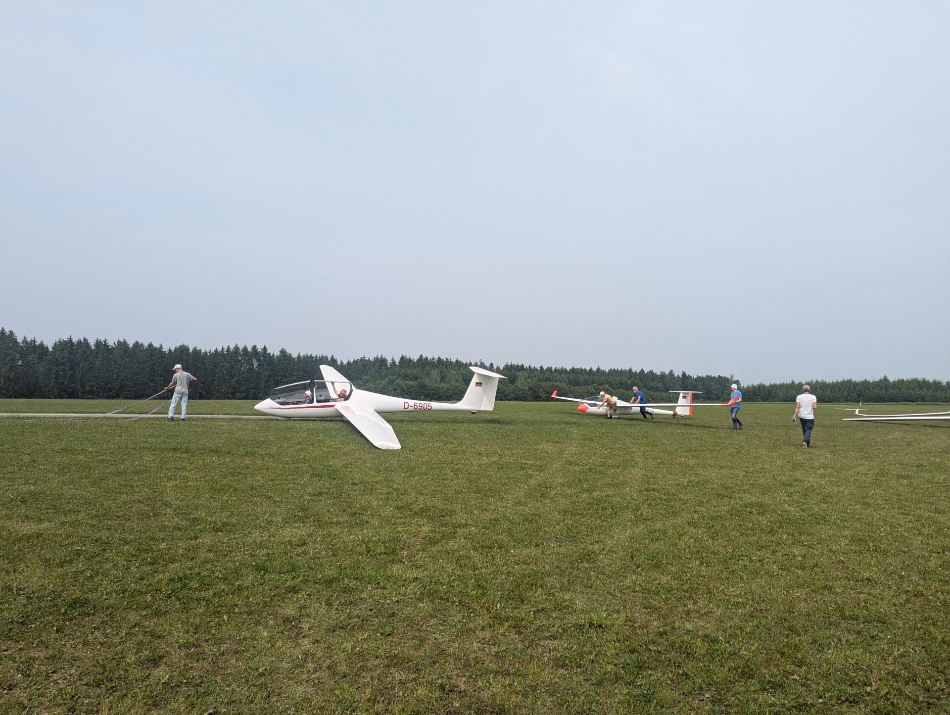 Auch an den folgenden Tagen bis Samstag blieb es sonnig. Allerdings beeinträchtigten zunächst Rauch von Waldbränden in Kanada und später Saharastaub die Sicht und störten die Thermik. Für Schulflüge waren die Bedingungen dennoch gut – ideal für zwei Flugschüler des MLV, die ihren ersten Alleinflug absolvieren konnten.