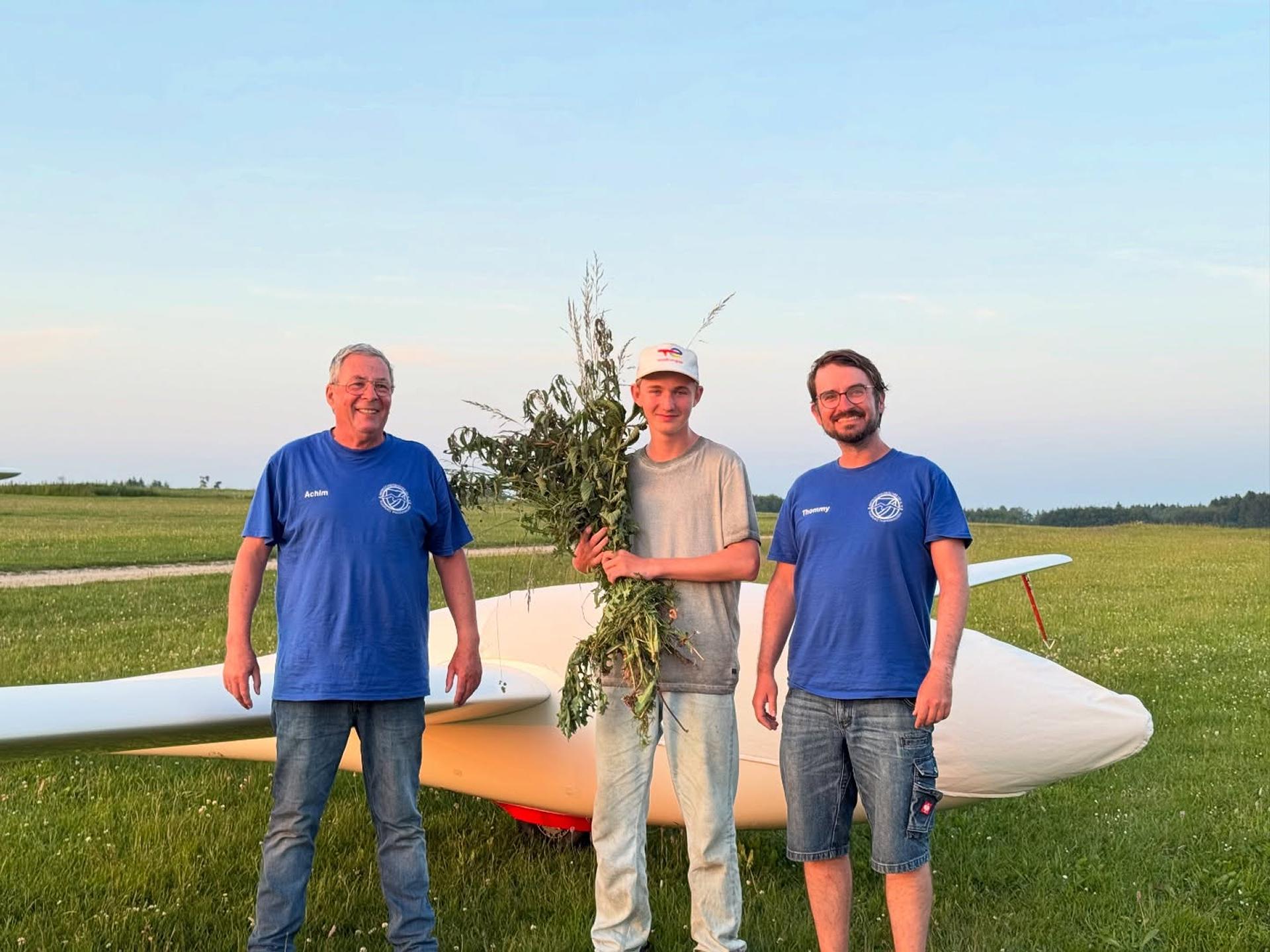 Ein besonderes Highlight war der 14. Geburtstag von Ben Schmidtlein am Pfingstsonntag – nur vier Tage später absolvierte er bereits seinen ersten Alleinflug! Nach wenigen Starts mit den Fluglehrern Achim und Thommy fühlte er sich mit dem neuen Gelände vertraut genug, um diesen großen Schritt zu wagen.