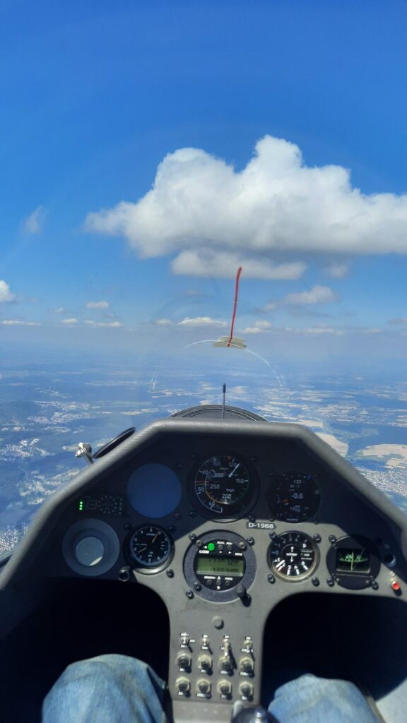 Obwohl Daniel als Letzter startete, war er nach über sieben Stunden als Erster wieder zurück in Thannhausen. Für ihn bedeutete dieser Flug gleich zwei Premieren: der erste Flug über sieben Stunden und sein erster „600er“. Wenige Minuten später landete Ferdinand mit der LS8 – allerdings nicht ohne Nervenkitzel: Auf den letzten Kilometern musste er zur Stromersparnis bereits elektrische Verbraucher abschalten, um Logger und Funkgerät am Laufen zu halten. Der Endanflug erforderte alles an Konzentration und Können, um mit der schwächer werdenden Thermik Thannhausen zu erreichen.
