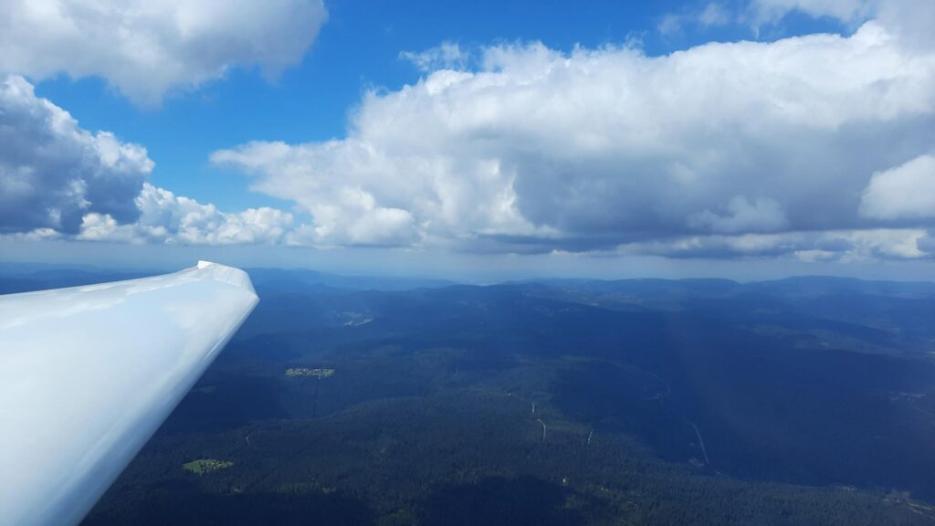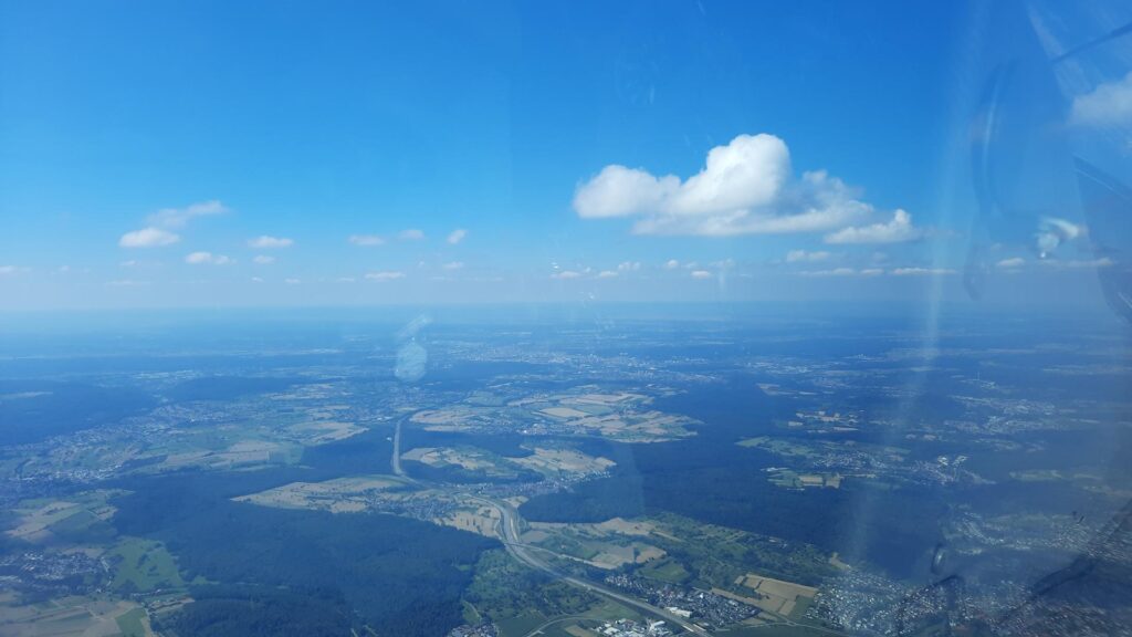 Am Vormittag gingen Daniel und Tim mit den Vereinsflugzeugen Discus und ASW 24 an den Start. Ferdinand hatte die besondere Gelegenheit, mit dem Förderflugzeug des LVB für Junioren, einer LS8, zu fliegen. Diese ist aktuell für mehrere Wochen in Thannhausen stationiert und steht sowohl ihm als auch Tim zur Verfügung. Mit ihrer etwas besseren Flugleistung gegenüber der ASW 24 bot die LS8 ideale Voraussetzungen für den gemeinsamen Flug im Team.
