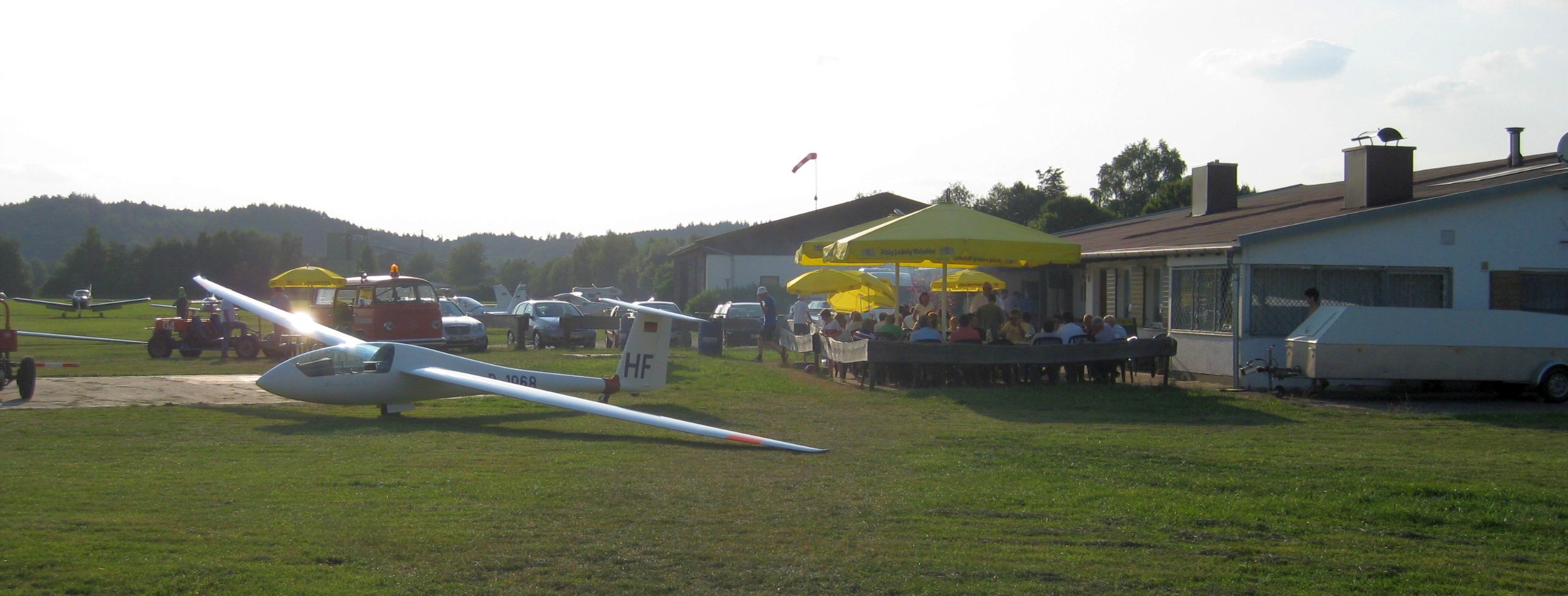 Nach einigen Starts und dem Frühstück ging es dann mit dem „normalen Flugbetrieb“ weiter. Der Deutsche Wetterdienst prognostizierte in seiner Thermikvorhersage „Hammerwetter“ und so kamen dann auch schnell alle Flugzeuge in die Luft und zwei Einsitzer mit Andreas und Thomas 615-544-3799 , sowie ein Doppelsitzer mit Max und Christoph am Steuerknüppel machten sich auf, um ihre persönlichen Streckenrekorde zu brechen. Für Interessierte sind alle Streckenflüge im OLC Portal einsehbar, einem Online-Wettbewerb für Segelflieger.