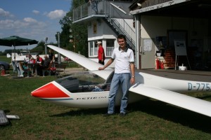 Nicht allzu gut gemeint hatte es das Wetter bisher mit den Segelfliegern. Zunächst viel Regen, dann übergroße Hitze, die ebenfalls kaum Thermik bescherte. Markus Lutz Flugschüler beim MLV wartete schon seit geraumer Zeit auf eine Wetterlage die ihm den 50km Navigationsflug ermöglichen sollte. Am Sonntag war es dann soweit. Ausbildungsleiter Flo Kremser konnte ihm nach entsprechender Vorbereitung den Flugauftrag für den 50 km Navigationsflug erteilen. Als Zielort hatte sich der Maschinenbau Student aus Babenhausen,Aichach ausgesucht. Nach knapp einer Stunde Flugzeit konnte er in Aichach landen. Markus kam über das Projekt „fliegendes Klassenzimmer“ zum MLV.