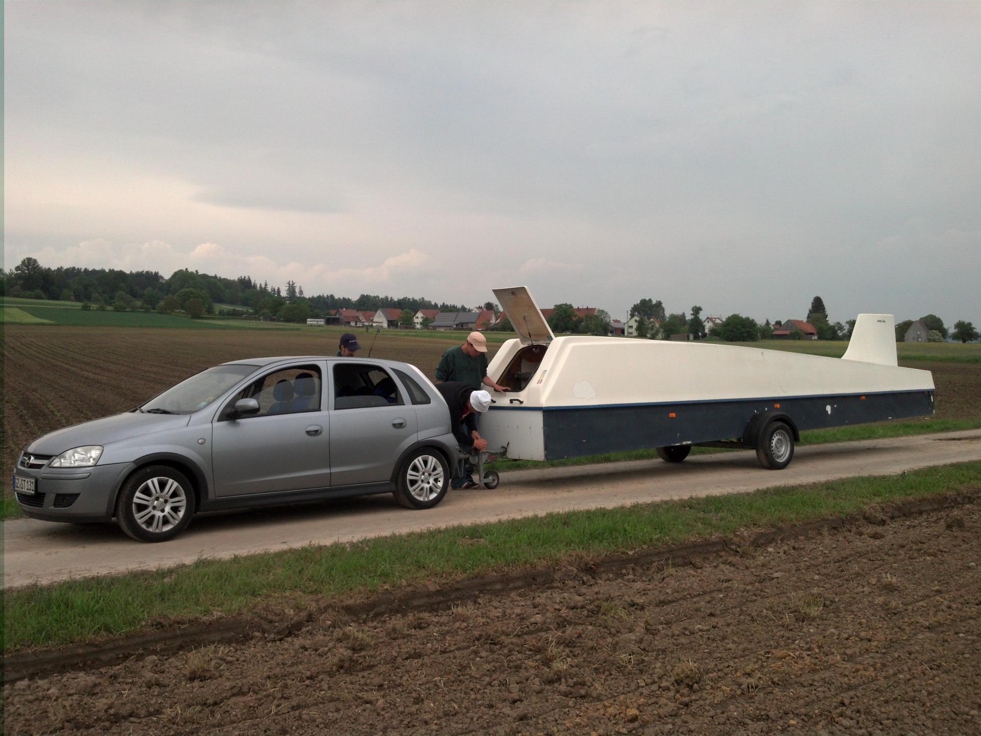 Kaum hatte die Abholmannschaft Flugzeug und Pilot nach Thannhausen zurückgebracht, klingelte das Telefon erneut. Dieses mal war Markus am anderen Ende, auch er musste mit dem Discus auf einem abgeerntetem Feld bei Nornheim/Günzburg landen. Puh … Wenn das so weiter geht …. Er musste sich aber noch etwas gedulden, bis in Thannhausen der Astir wieder aufgebaut und gesäubert war. Zwischenzeitlich kehrte auch Thorsten zurück (immerhin schon mal einer) und wir halfen ihm noch seinen Astir in den Anhänger zu packen, schließlich musste er Abends wieder zurück nach Weißenhorn.
