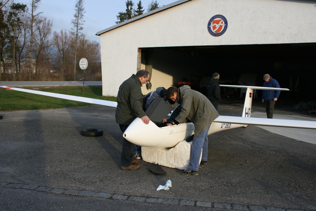 JNP steht für Jahresnachprüfung. Unser jüngstes Flugzeug im Hangar ist das erste in der Reihe der nun folgenden Jahresnachprüfungen unseres Flugzeugparks. Erwin Wendel über viele Jahe hinweg Prüfer bei Grob Flugzeugbau hat am Samstagnachmittag den Motorsegler und den Discus gründlich untersucht. Er konnte keine Mängel feststellen und somit kann / darf mit den Flugzeugen wieder geflogen werden.