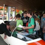 Am Freitag Vormittag lud die Mittelschule Krumbach zum „Tag der Vereine“ ein. An zahlreichen Stationen konnten die begeisterten Schüler nicht nur die ortsansässigen Vereine kennenlernen, sondern auch bei Spielen mitmachen oder die Fahrzeuge von Feuerwehr und THW im Einsatz erleben. Auch ein Segelflugzeug fand den Weg zur Schule. Christoph Deuring und Thomas Kraus, zwei junge Piloten vom Mittelschwäbischen Luftsportverein, erklärten den Schülern, wie ein Flugzeug ohne Motor fliegen kann. Natürlich durften alle Interessierten auch einsteigen und selbst aus der Perspektive des Piloten Steuerknüppel und Instrumente bedienen.