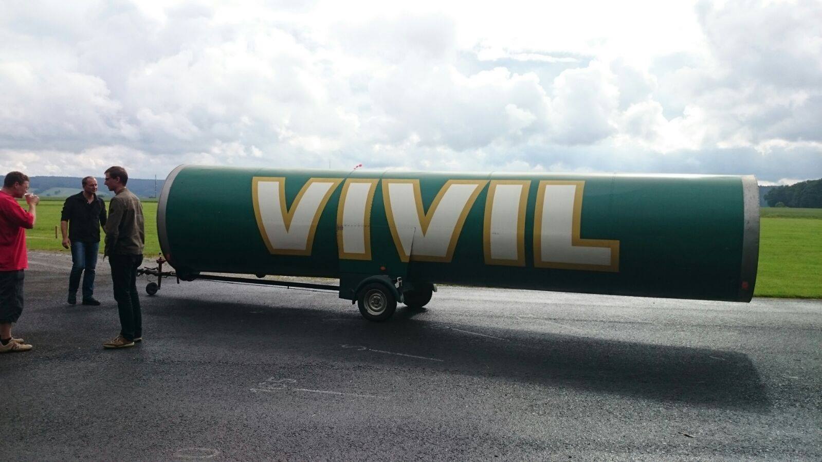 Eine sogenannte „Schweizer Röhre“, eingalden wird über die Deichsel. Gerade mit der VIVIL-Lackierung waren wir durchaus auffällig auf der Heimfahrt nach Thannhausen.