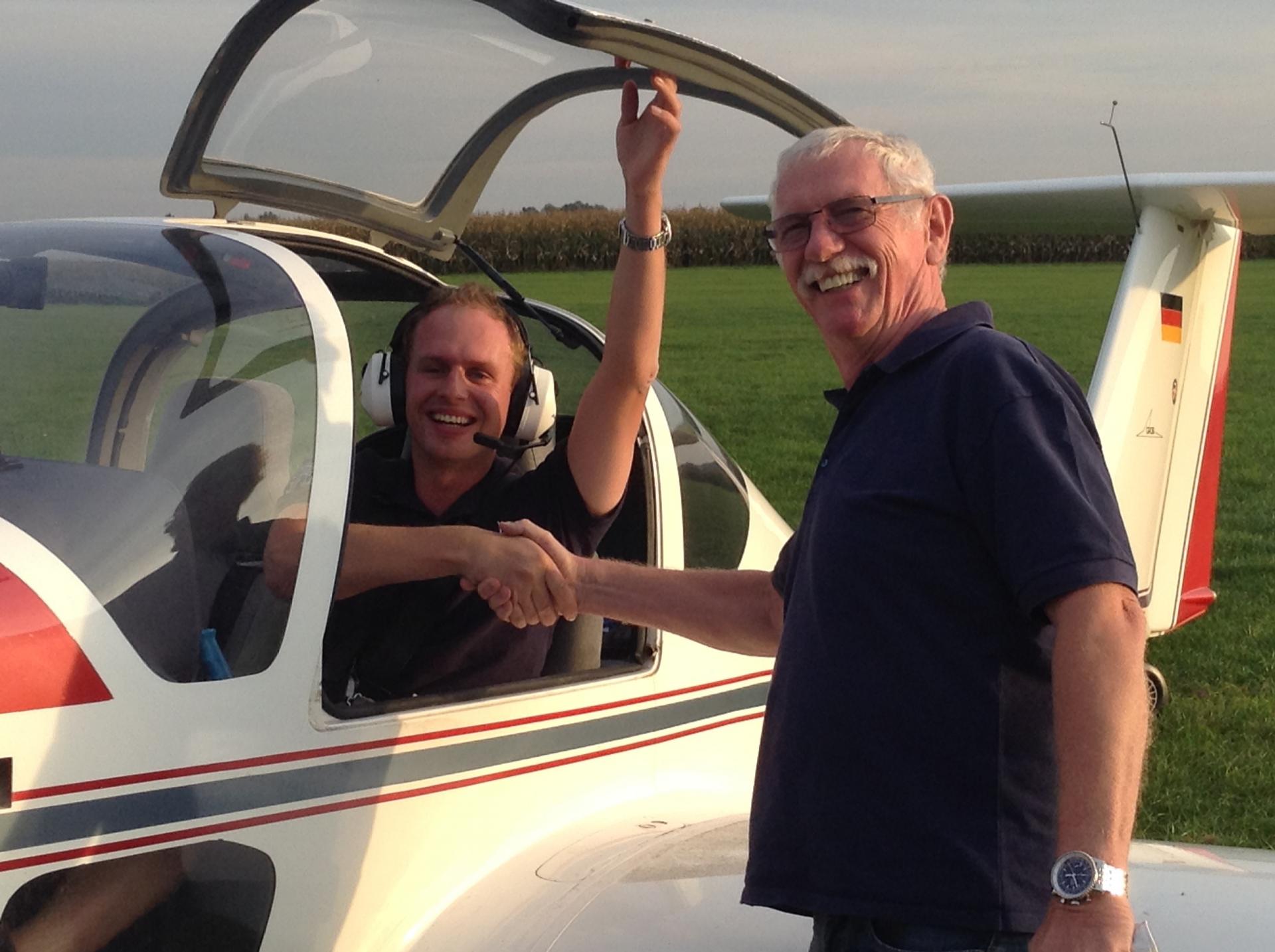 Christoph hat nach dem “Go” durch Motorflug-Ausbildungsleiter Volker Bscher bei herrlichstem abendlichen Spätsommerwetter seinen Alleinflug ins unsrer G 109 B erfolgreich absolviert. Herzlichen Glückwunsch Deusi und weiterhin viel Spaß!