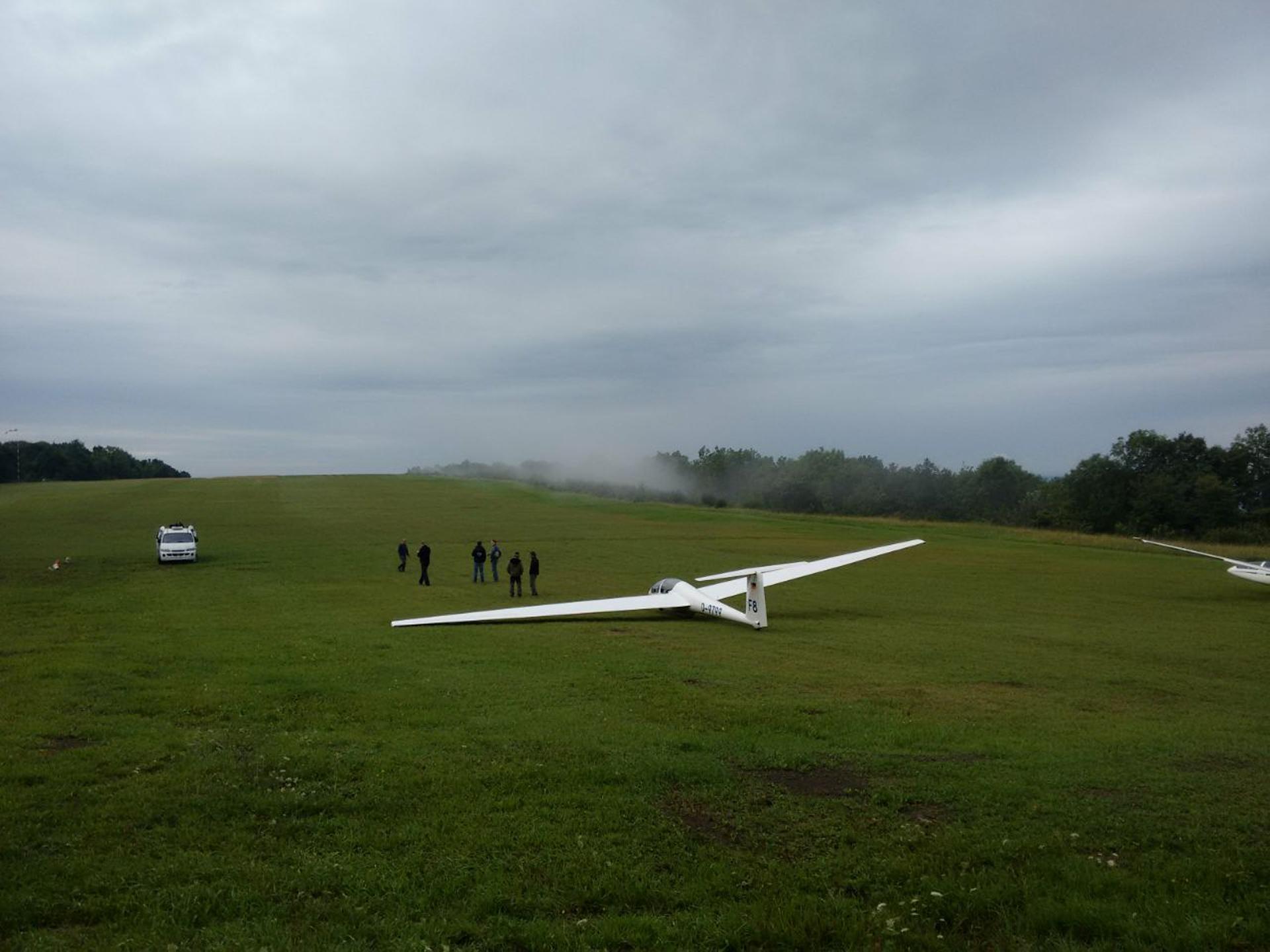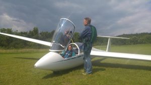 Weiter ging es mit den ersten Figuren: Looping, Aufschwung, Abschwung, Rolle und Turn. Am 5. Tag wurde es ernst für Thommy und Markus: Das Prüfungsprogramm wurde solo in der ASK21 absolviert unter dem routinierten Blick von Schiedsrichter und Kunstflugtrainer Horst Havrda bewertet. Beide waren erfolgreich, wie auch die meisten anderen Grundschüler. Für den Rest ging es dann nach einer Regenpause zum letzten Lehrgangstag zur Prüfung. Inzwischen konnten sich die meisten der jungen Kunstflieger mit dem kunstflugtauglichen Einsitzer, der Pilatus B4 des Fördervereins anfreunden. Aber auch das Regenwetter wurde genutzt für Theorie oder einen Ausflug nach Bamberg, ins Schwimmbad und in die Teufelshöhle.
