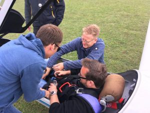 Auf den Doppelsitzern ASK21 und DG1000 ging es dann für die „Grundschüler“ per F-Schlepp zu den ersten Übungen: Trudeln, Rückenflug und damit einhergehend das Wiederherstellen einer normalen Fluglage aus jeglichen Fluglagen. So ist Kunstflug auch ein Sicherheitsgewinn, denn man erlernt und trainiert die Beherrschung des Flugzeugs auch in abnormalen und besonderen Flugzuständen.