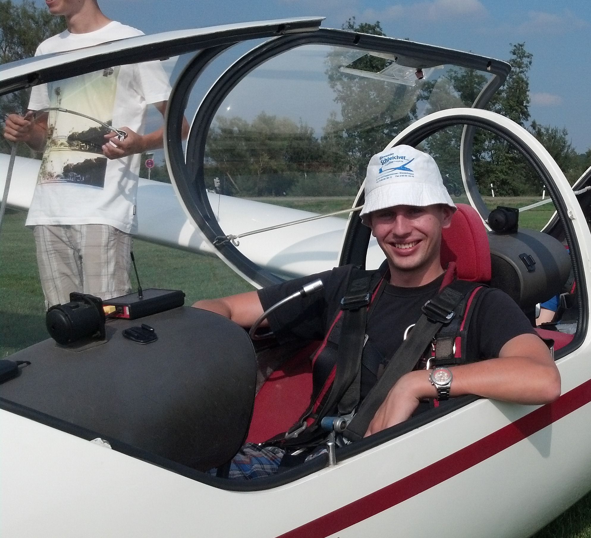 Thommy hat 2015 den Fluglehrerlehrgang abgeschlossen und  ist seit dem Segelfluglehrer im Ausbildungsteam des MLV (hier geht es zu seinem Blog zum Fluglehrerlehrgang). Über ein Schulprojekt des Krumbacher Gymnasiums zum Thema „Fliegen“ fand er 2003 den Weg zum MLV. Dort konnte er bis zum ersten Alleinflug bei den Segelfliegern mitschnuppern. Der Flugvirus packte ihn und so führte er nach Ende der Schulveranstaltung die Ausbildung zum Segelflugzeugführer fort. Den Großteil seiner Freizeit verbringt der Physiker immer noch am Flugplatz. Seit einigen Jahren ist er bereits als Abteilungsleiter der Segelflieger und kümmert in dieser Funktion auch um einen kontinuierlichen Pilotennachwuchs durch die Organisation von Schnupperfliegen, Kinderferienprogramm oder vereinsinterne Streckenflug-Wettbewerbe.