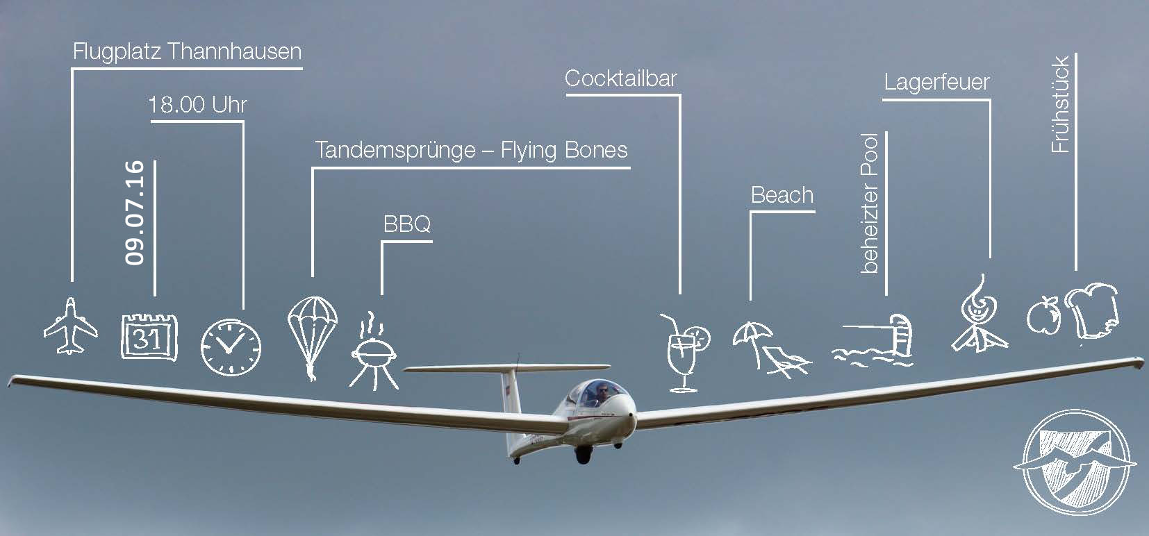 Alle Jahre wieder steigt das Fly-In in Thannhausen. Unsere Jugendgruppe stellt dazu eine „Strandbar“ auf und den beheizten Pool, willkommen sind alle jungen und alten Piloten und Luftsportbegeisterte!