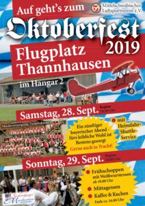 Am Wochenende vom 28. und 29. September findet wieder unser traditionelles Oktoberfest in Hangar 2 statt und wir möchten Euch alle recht herzlich dazu einladen!