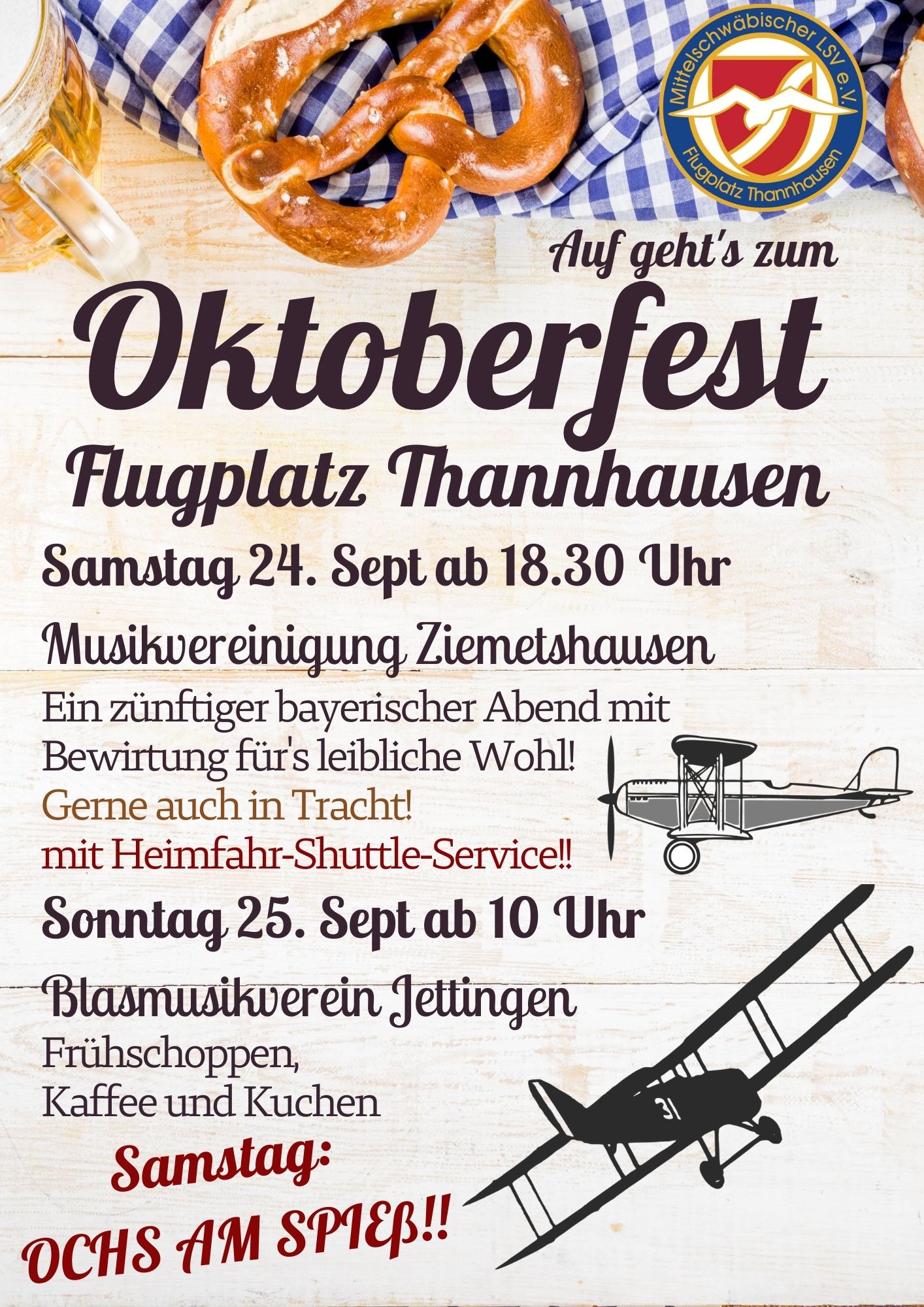 Am Wochenende vom 24. und 25. September findet nach viel zu langer Corona-Pause wieder unser traditionelles Oktoberfest am Flugplatz Thannhausen statt! Dazu möchten wir Euch alle recht herzlich einladen!